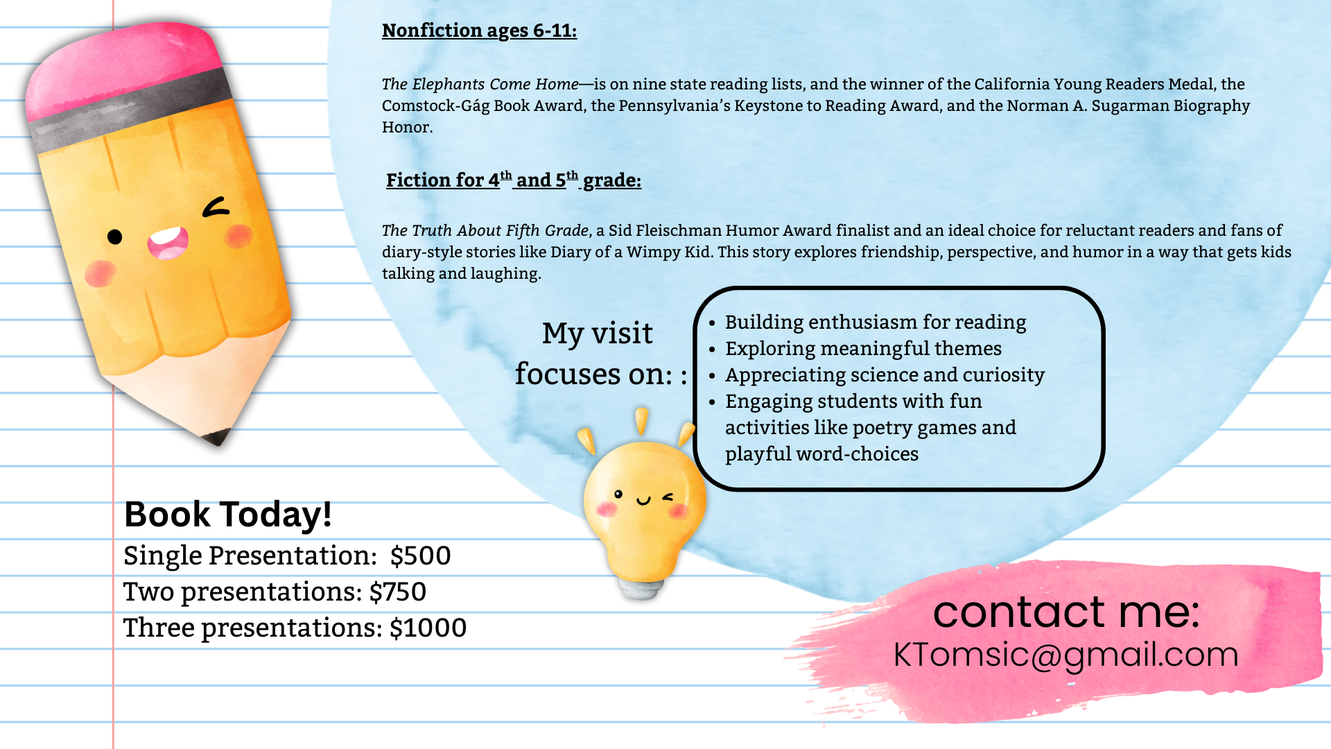 A funny he-said she-said diary on perspective and what really went down in 5th grade, co-written and illustrated by Kim Tomsic and award-winning comic artist, Mark Parisi (HarperCollins August 2024)!